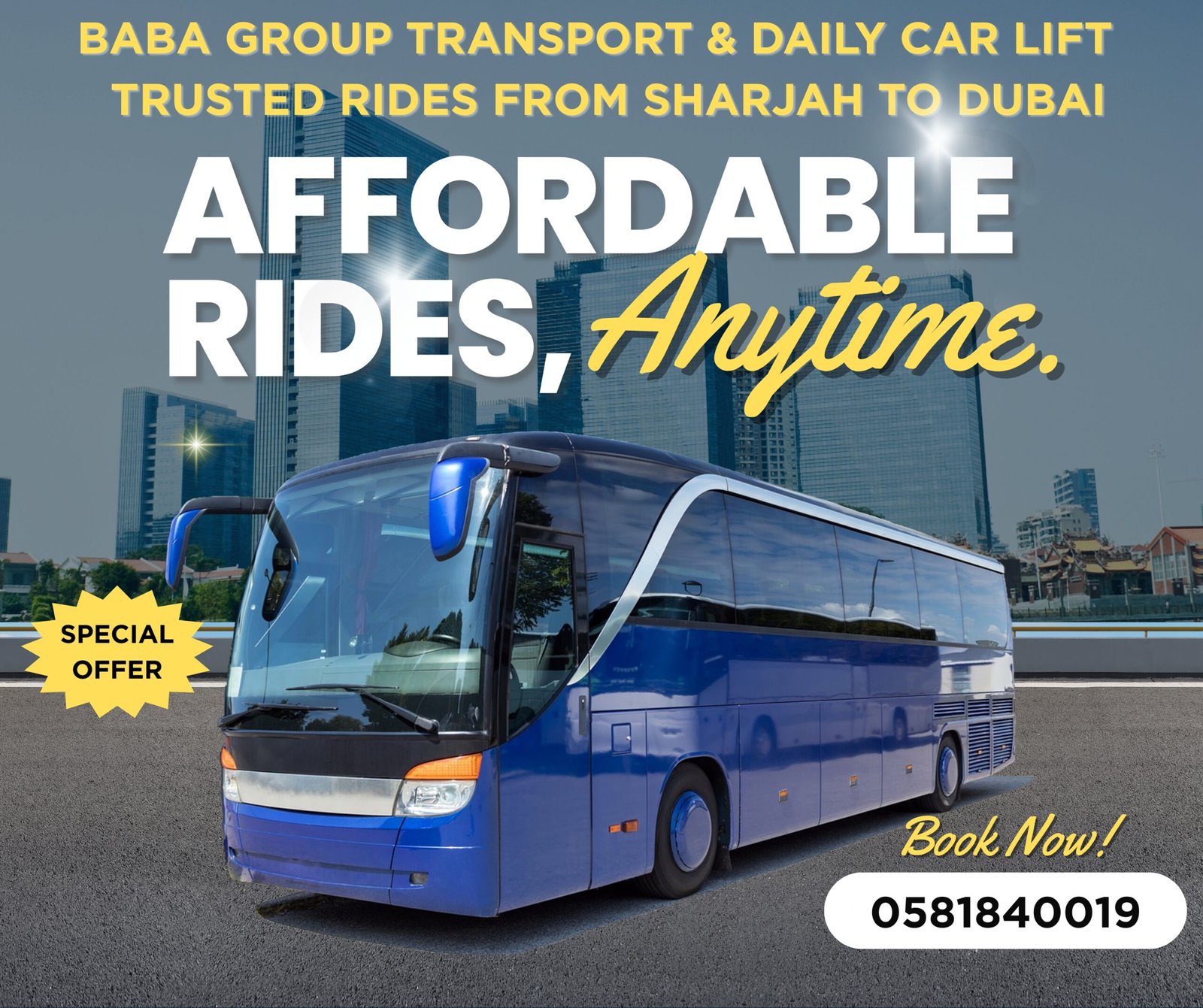 Baba Group Transport & Daily Car Lift β Trusted rides from Sharjah to Dubai