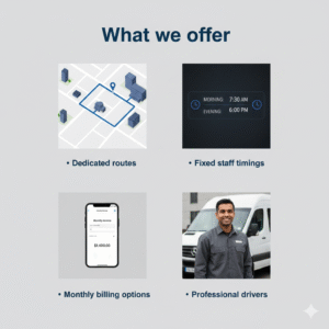 This service is ideal for offices that want reliable daily transport for their staff.